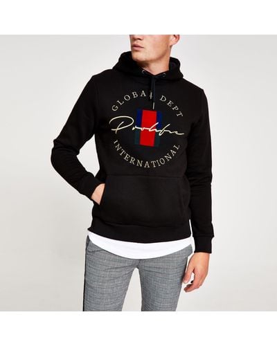 Prolific Black Slim Fit Hoodie River Island