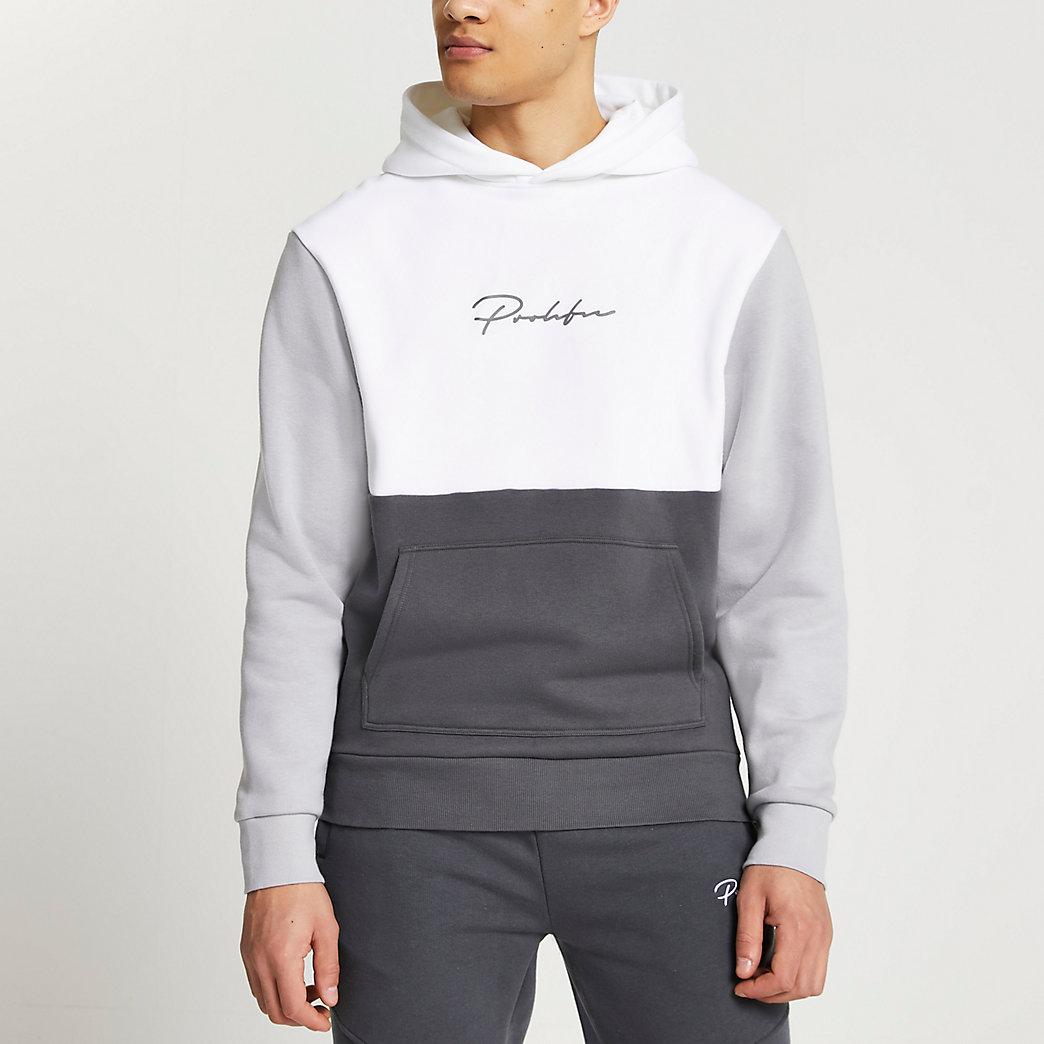 River Island Prolific Grey Colour Block Regular Fit Hoodie In Gray For Men Lyst