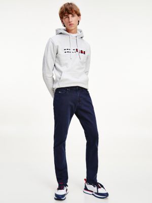 Scanton Recycled Cotton Slim Fit Jeans. Embrace Tommy Hilfigers signature laid-back cool year round with a pair of mens slim fit chinos and sweatshirt. Take a masterclass in pared-back styling with these understated chinos in a flattering slim fit made from stretch organic cotton.